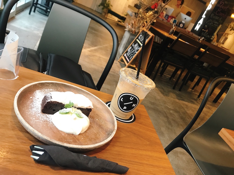 チェックインの時間より少し早くついてしまったときに、ケーキとアイスカフェラテを飲んだんですが、おいしかった!
