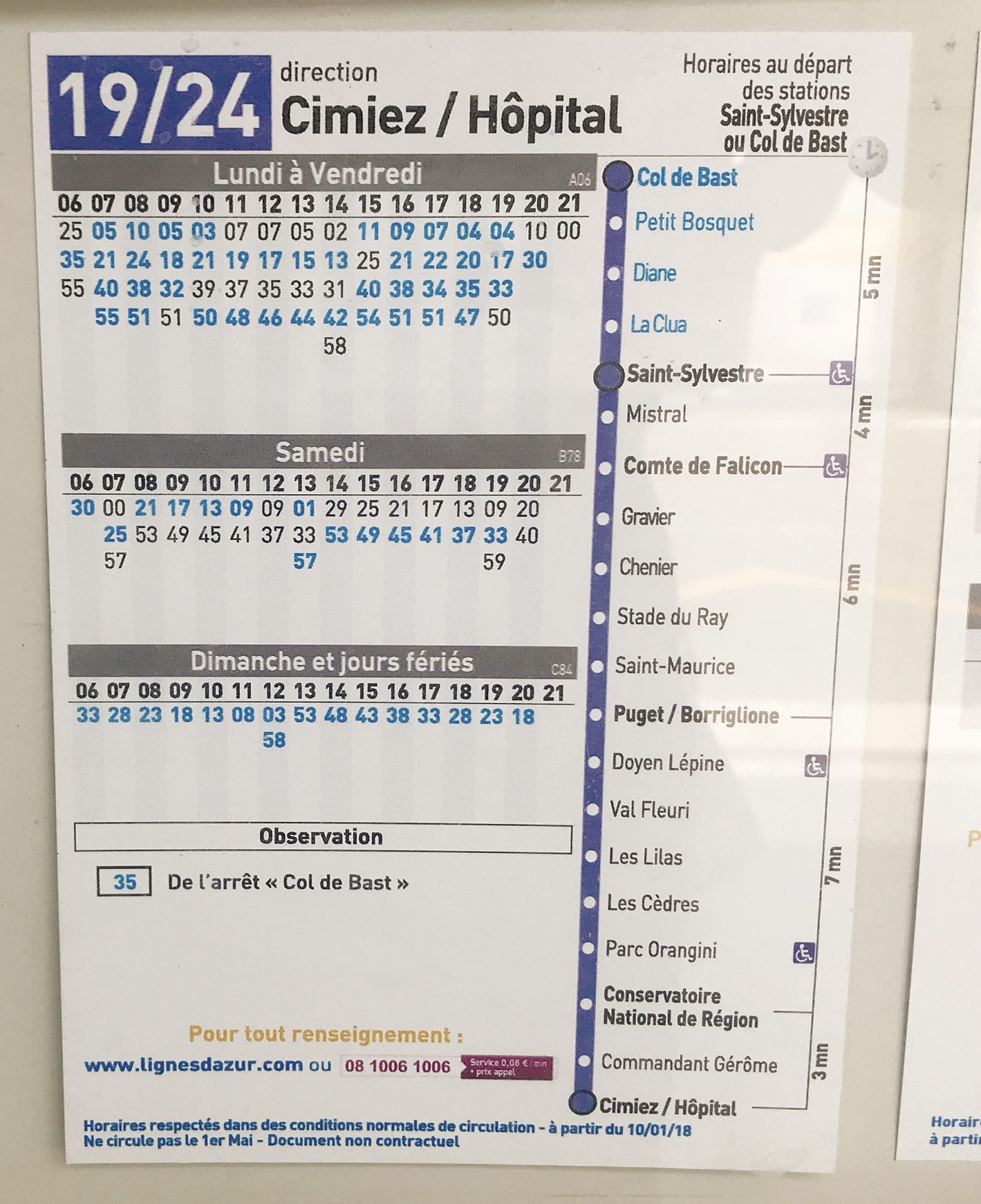 ニース夏期国際アカデミーで利用するバスはこの19/24というバスです。