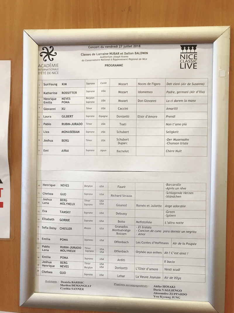 お昼の時間にはコンサートが行われるコンセルヴァトワール内のホール前に貼り出されます。