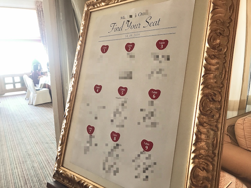 演奏を楽しんだ後は、席次表をチェックしてお食事をいただく広間に移動します。
