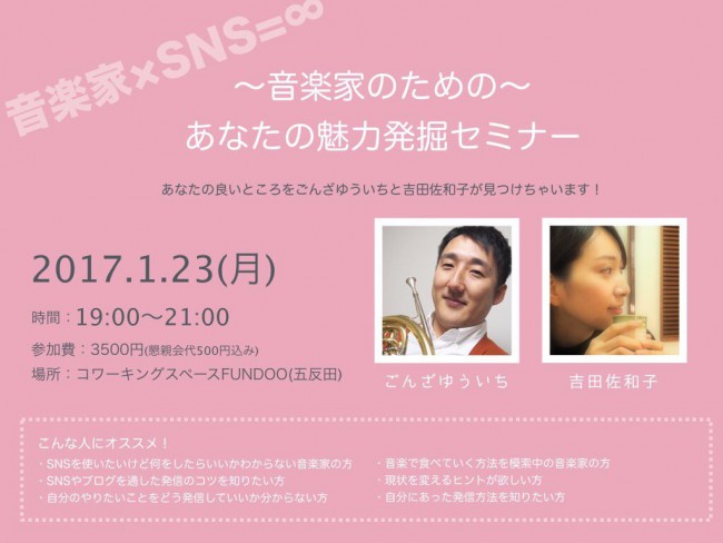 1/23(月)は東京でイベント開催!『音楽家のための魅力発掘セミナー』